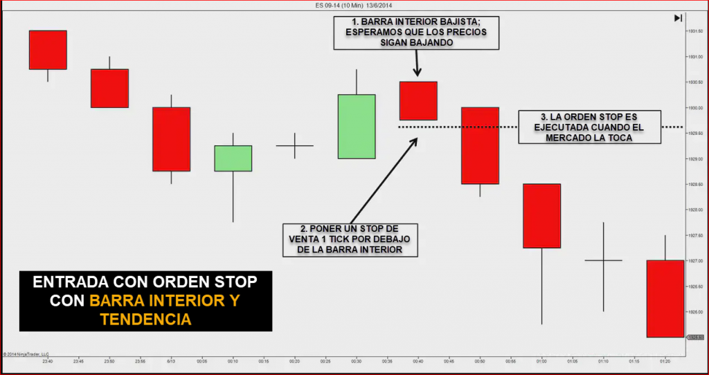 2. Se colocó una orden stop de venta un tick por debajo de la barra interna bajista.