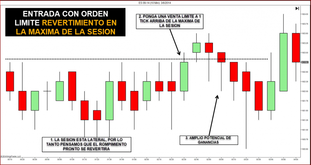 Pero si se usan las órdenes limitadas con inteligencia, ofrecen una gran ventaja de tiempo con poco movimiento adverso. Con una orden limitada bien colocada, no se sufrirán más que un par de ticks de pérdida temporal durante la operación.